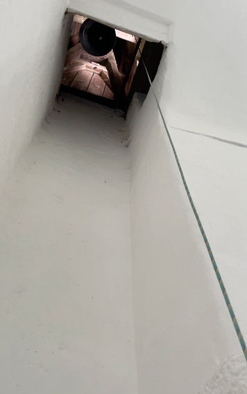 Tja, da war ich nun. Plötzlich kamen wir an eine Waldlichtung und es tauchte diese verlassene Kirche vor uns links des Weges auf. Ich wollte jetzt schon fast "gottverlassene" schreiben. Aber genau das war es eben nicht. Es herrschte, wie ich im Buch erzählte, regelrechtes Sauwetter und wir flüchteten in dieses Kirchlein, zu dem mich mein Schutzengel Elemiah führte – wie ihr es ja aus dem Buch kennt. Ihr werdet euch jetzt vielleicht wundern, warum dann auf den Fotos die Sonne scheint. Das ist leicht erklärt. An jenem Tag hatte ich wirklich andere Sorgen, als Fotos zu machen. Wir mussten uns ja vor dem verheerenden Unwetter retten. Als ich mich später aber dann entschied, euch meine Geschichte zu erzählen, suchte ich dieses himmlische Kirchlein erneut auf, um es euch zeigen zu können. Und voilà! … Hier ist es! Das Kirchlein. Der Aufgang mit dem Rundbogenfenster. Die steinernen Treppen zu den Höhlen hinauf. Die Bänke. Das verhängnisvolle Seil mit dem Glöckchen und der sagenumwobene Altarraum. 👀